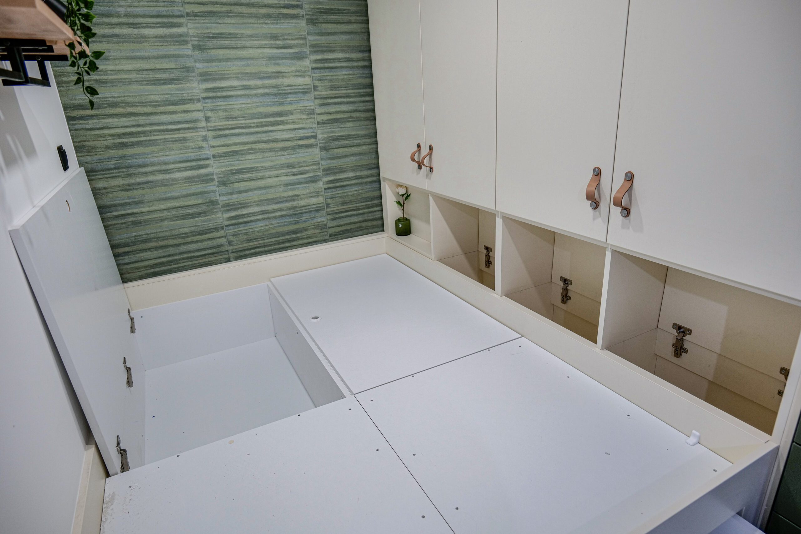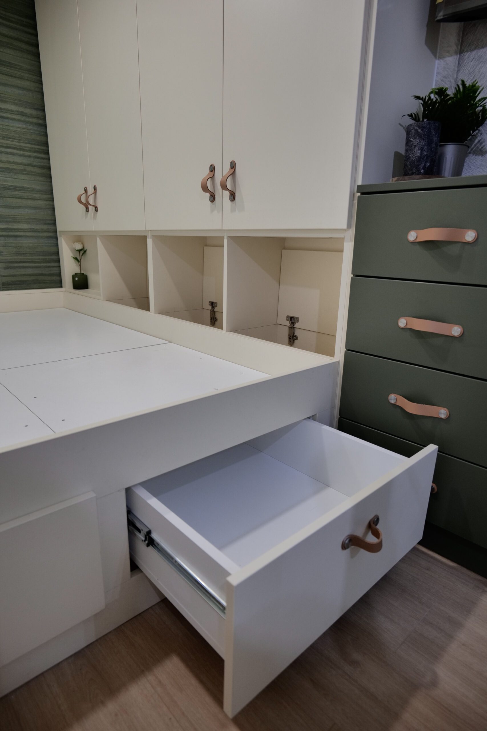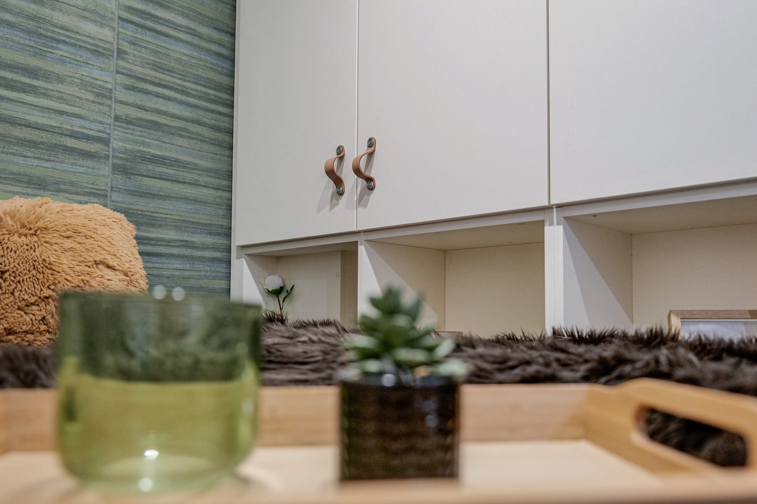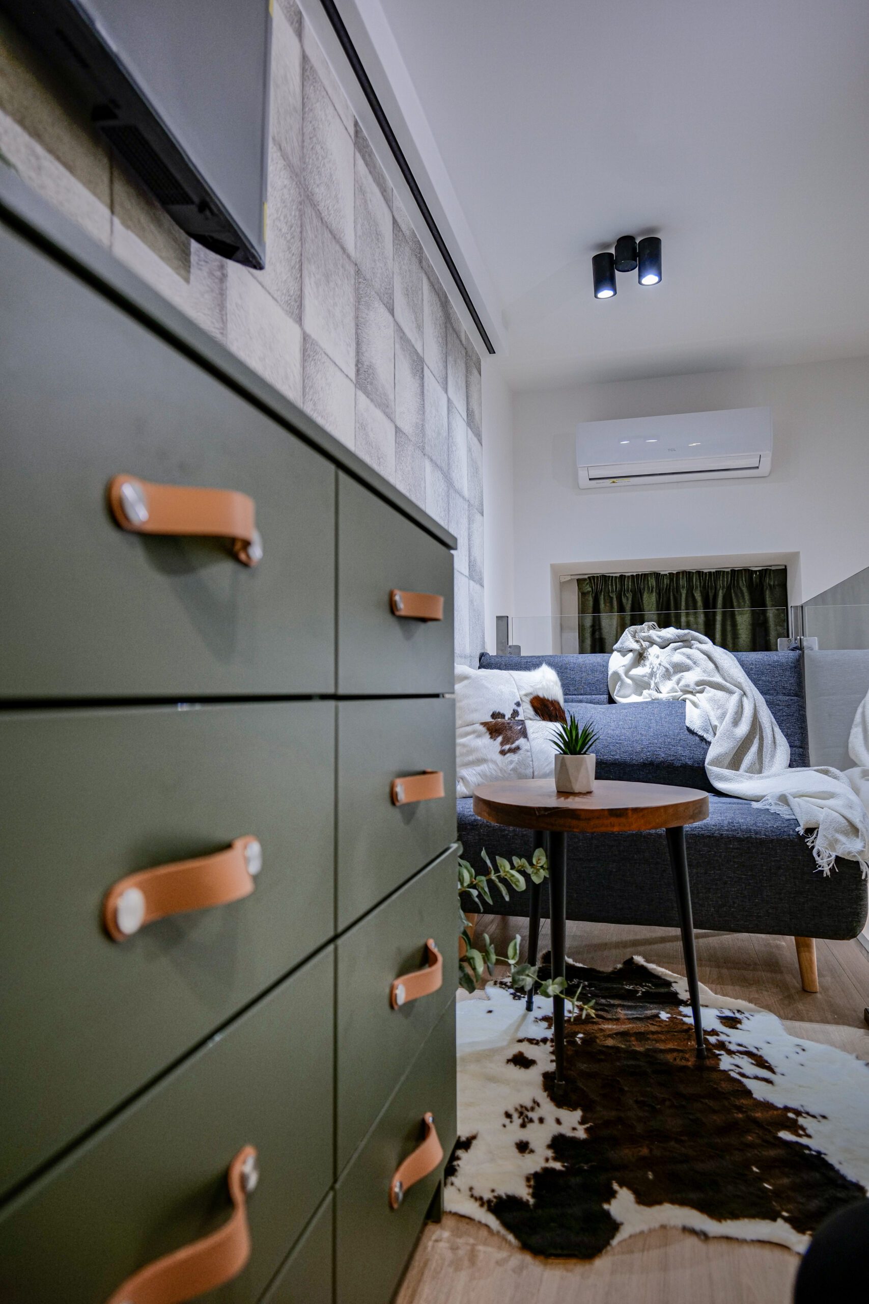 TimeLessDesign lakberendezői által készített tervek alapján készült el a lakás. 10m2 alapterületű kis nagyon magas minőségben kivitelezett lakás. Galéria 7m2, ami tele van tárolókkal, még az ágy alatt is. Az alsó szinten van konyha-étkező, fürdőszoba. Az emeleten egy háló és a nappali rész került elhelyezésre. Tv 360 fokban forgatható, így a nappaliból és az ágyból is nézhető.