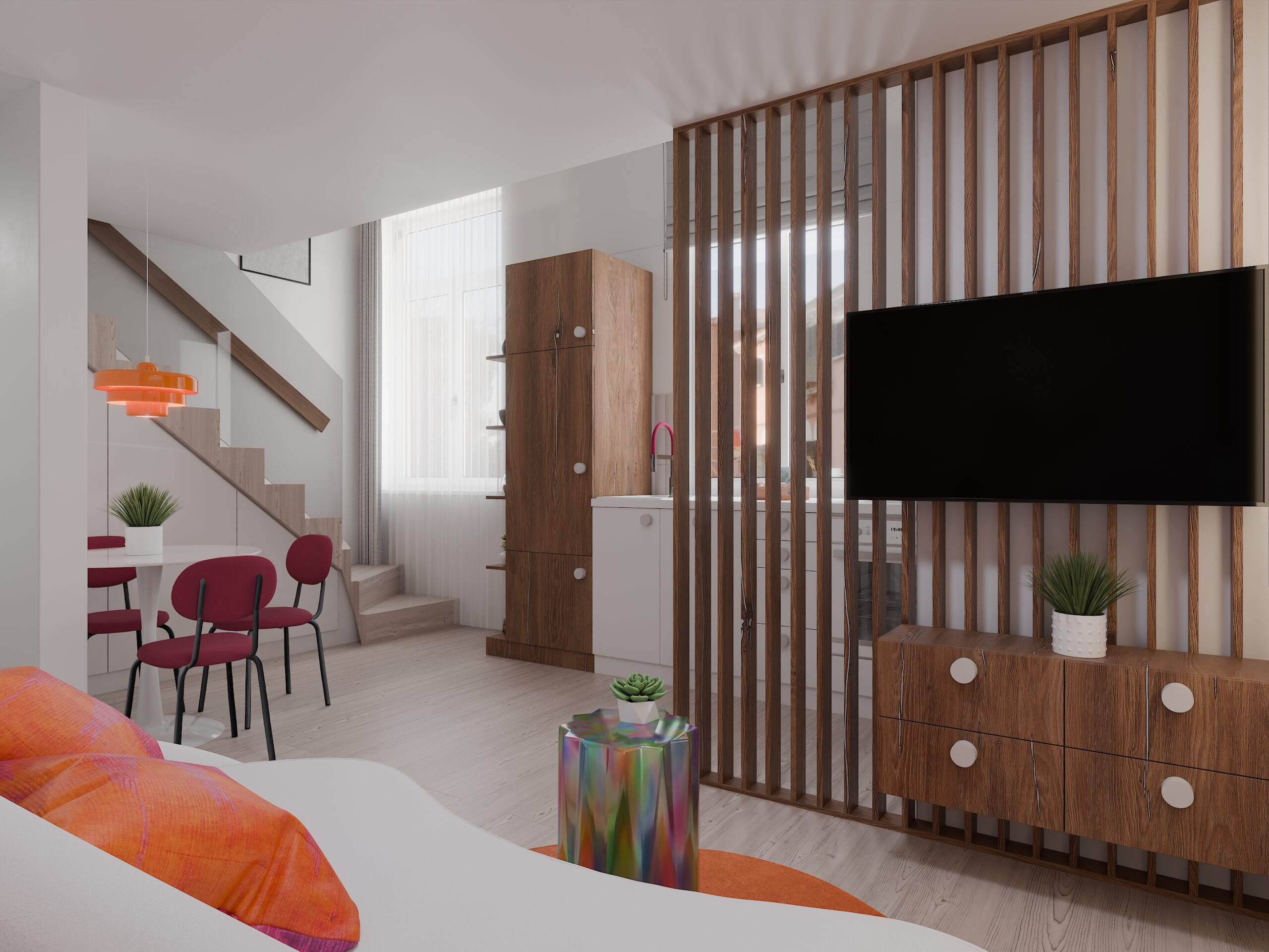 3-as lakás: 26m2 (16m2 alapterület + 10m2 galéria) . (galéria alatti magasság 210cm, galéria felett 190cm) – ELKELT